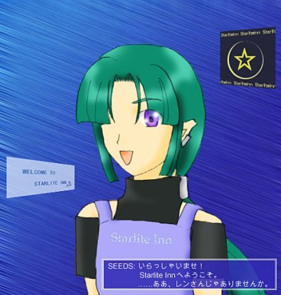 ![]() レンの覚え書き 『Starlite Inn』は無人のネットカフェだ。 無人と言っても勿論管理者がいて、それがこのSEEDSさん。勿論人間ではなくて、れっきとしたバーチャルキャラクターだ。 ちなみに、なぜ宿屋でもないのに「Inn」という名前がついているかというと、店内に並んでいるネット接続用のマシンをベッドに見立てているからと、ネット利用者のキャラクターデータを保管しているからなんだそうだ。 サイバースペース内にも同名の店があって、そこはネットサーフィンする者達の憩いの場所として賑わっている。そちらを管理するのもSEEDSさんの仕事だ。 現実世界ではモニタ越しにしか会話できない彼(?)と、サイバースペース内で直接(というのは語弊があるかもしれないけど)話すのが、僕の密かな楽しみだったりする。なんと言っても、あの人は物凄く聞き上手だから。レミーやクラリスとの会話に疲れると、ついここに来ちゃうんだよね。 SEEDS: レンさんも大変ですねえ。 Ren: ……そう言ってくれるのはSEEDSさんだけだよ。 SEEDS: そんなレンさんにこんなことをお伝えするのは、非常に心苦しいのですが…… Ren: え? SEEDS: お迎えです。 Remy: おにいちゃーん♪ Ren: うっ……! ……『Starlite Inn』は、《Shining k-nights》の支部の一つだったりする。 |